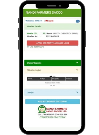 Experience the convenience of savings and loans with NANDI FARMERS Sacco's mobile app.